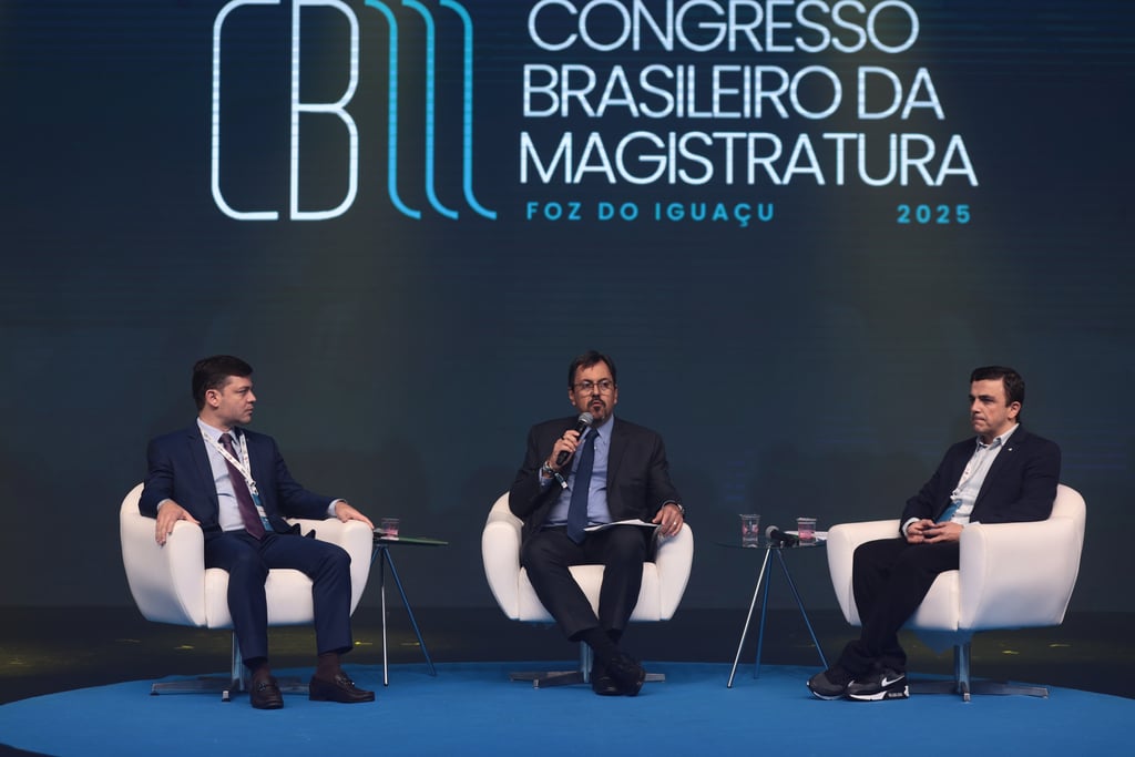 O presidente da mesa de debates, o Des. Jayme Martins de Oliveira Neto, Presidente Honorário da AMB, ressaltou a importância de tratar sobre esses temas durante o Congresso da Magistratura.