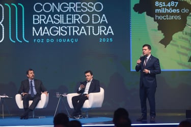 Abrindo o terceiro dia do XXV Congresso Brasileiro da Magistratura, o décimo painel da programação científica trouxe para o centro do debate os impactos do agronegócio e da regulação do mercado de carbono na realidade brasileira.