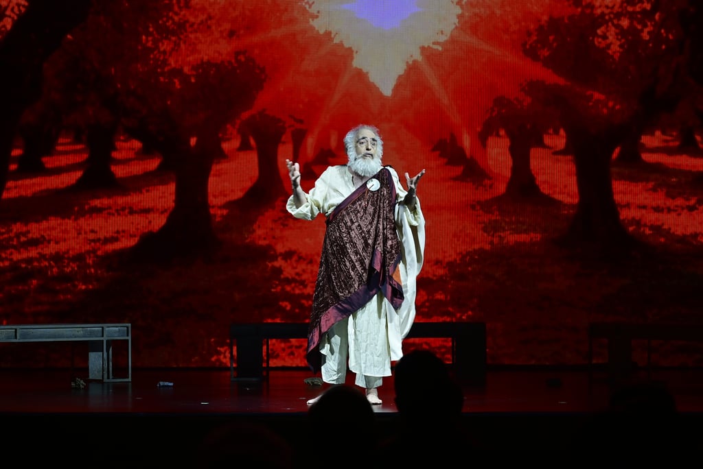 A encenação acompanha o filósofo até seu último instante, quando, ao beber a cicuta, encontra a paz. Suas reflexões durante o espetáculo reforçam a sua filosofia: “Cuidem da alma, porque o corpo é uma armadilha”.